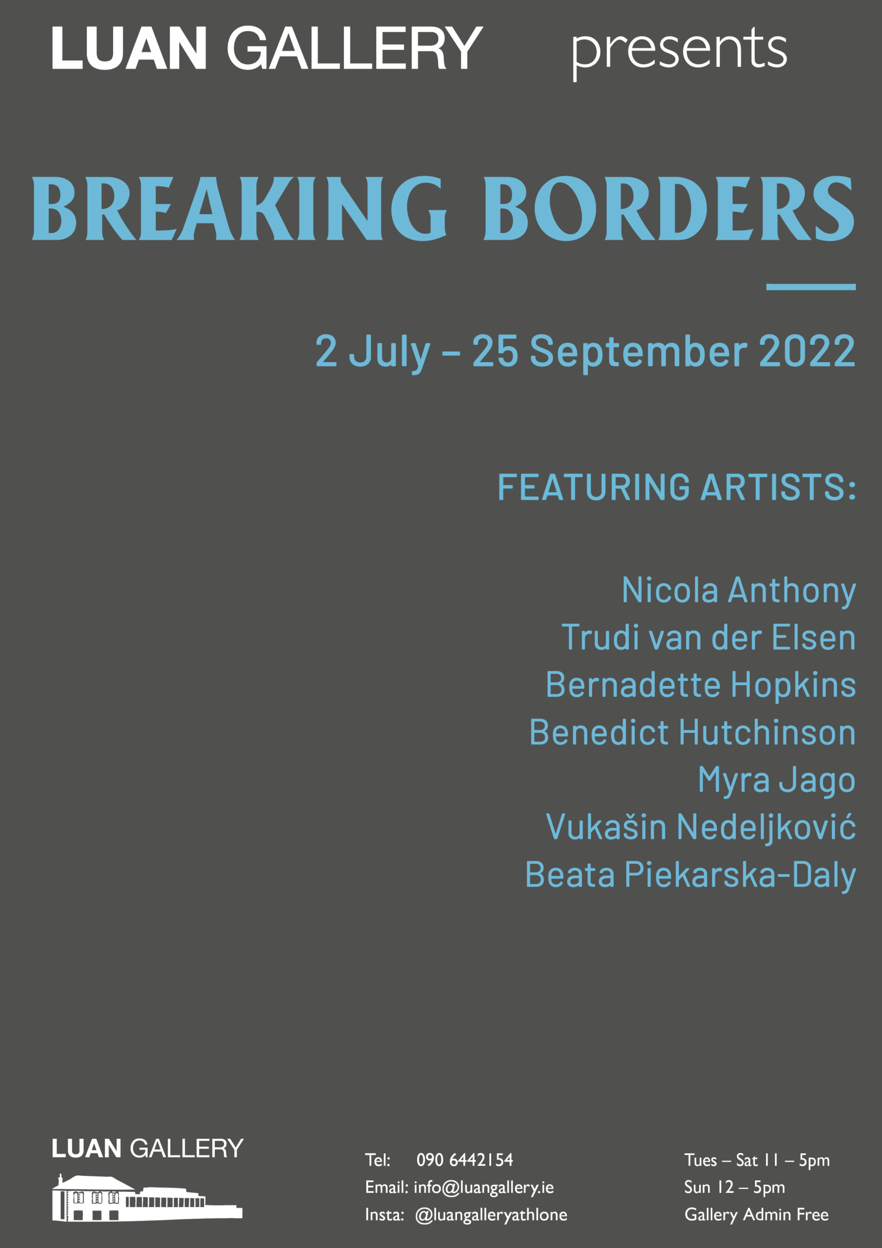 Luan Gallery is pleased to present a group exhibition Breaking Borders featuring artists Nicola Anthony, Trudi van der Elsen, Bernadette Hopkins, Benedict Hutchinson, Myra Jago, Vukašin Nedeljković, and Beata Piekarska Daly.